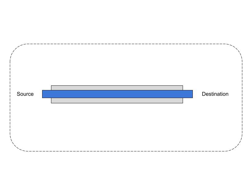The first SSH connection is created from the Destination to the Source. The second SSH connection is created from the Source to the Destination through the first SSH connection. All data transmitted over the second SSH connection will actually be going via the first SSH connection.